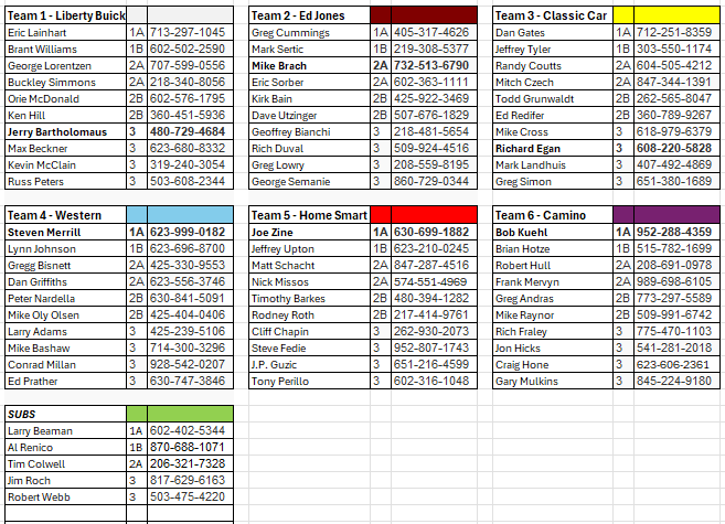 Golden Oldies Rosters