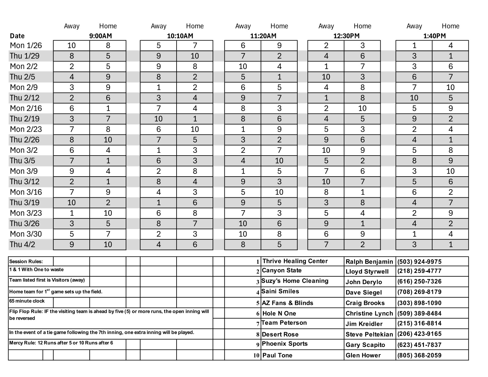 NL Scorekeepers Sched