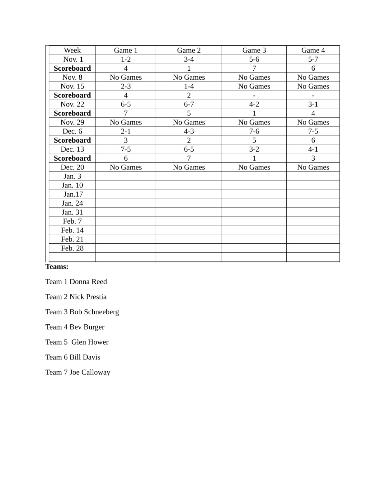 NL Scorekeepers Sched