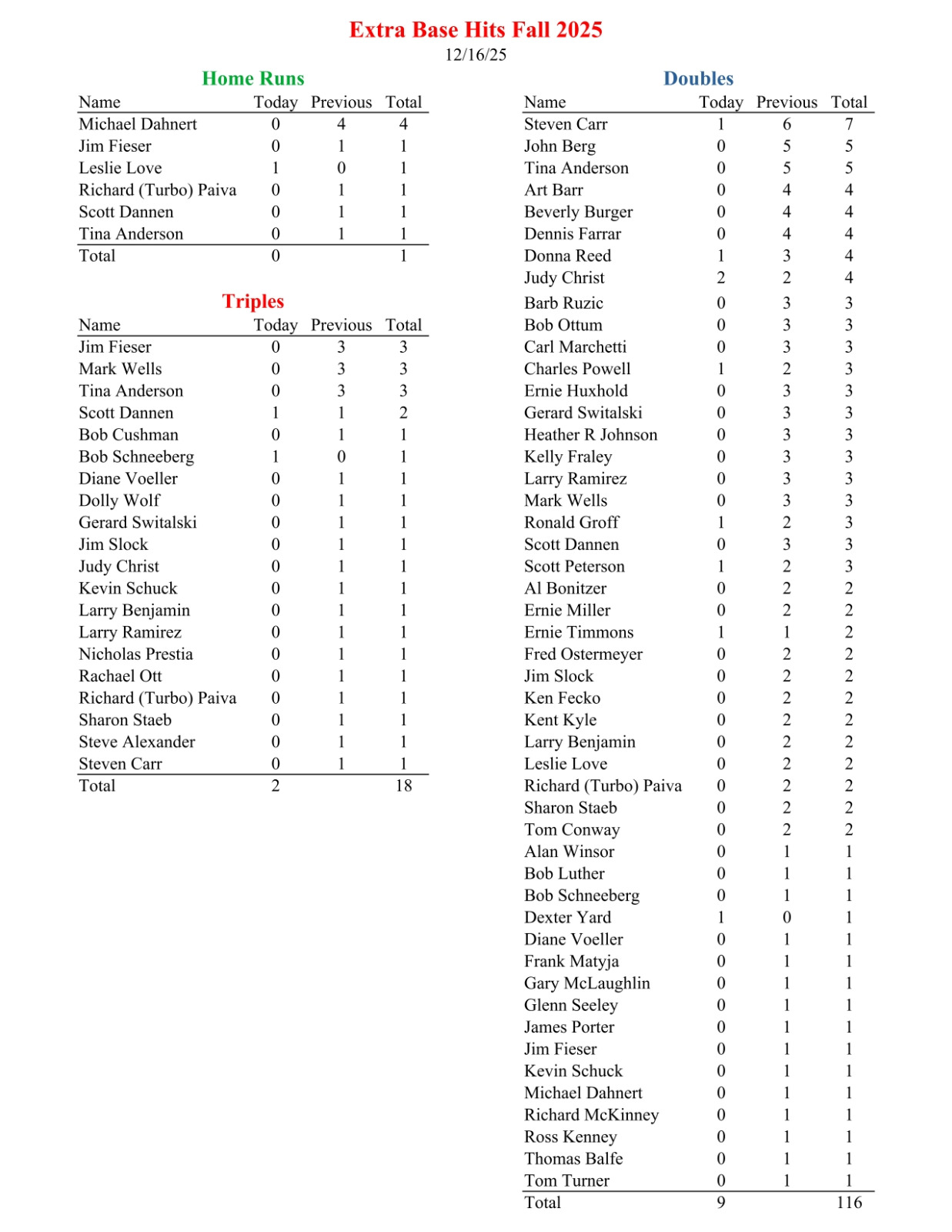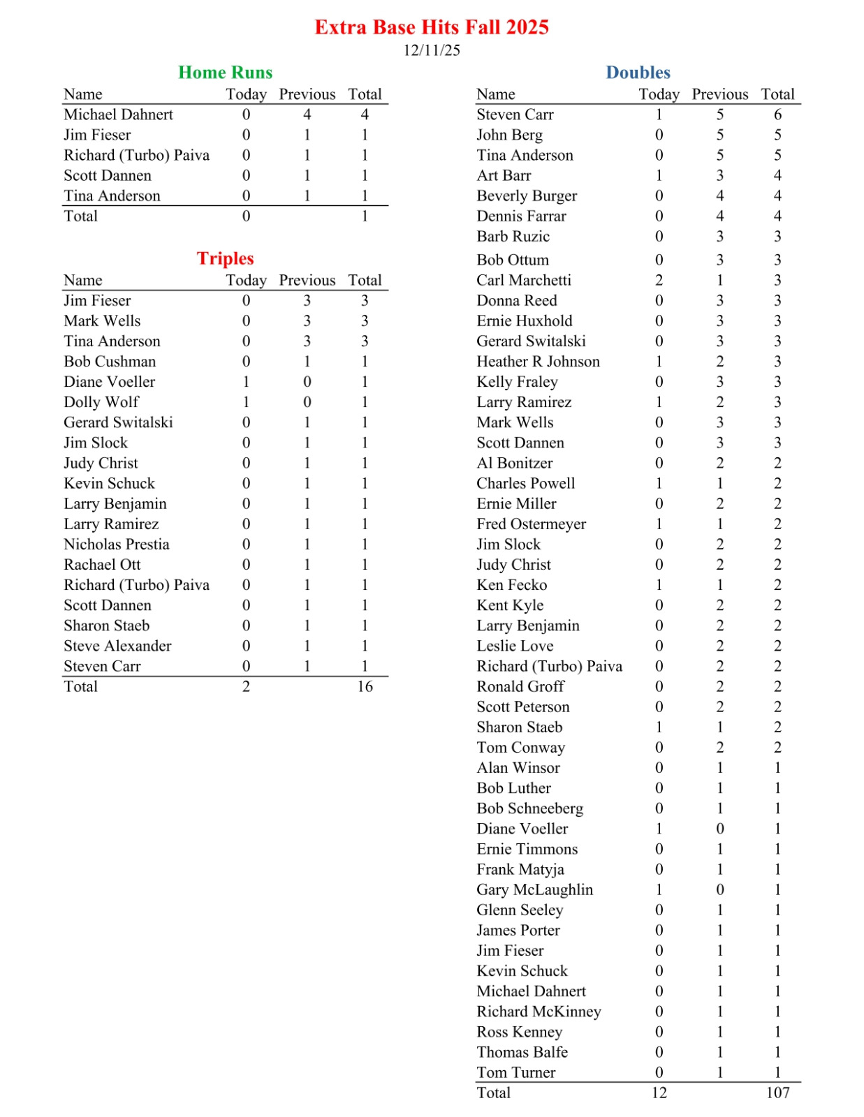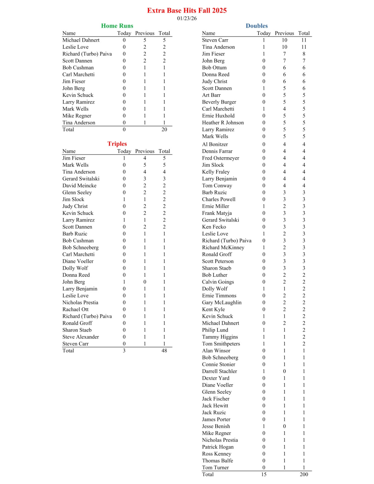 NL Extra Base Hits