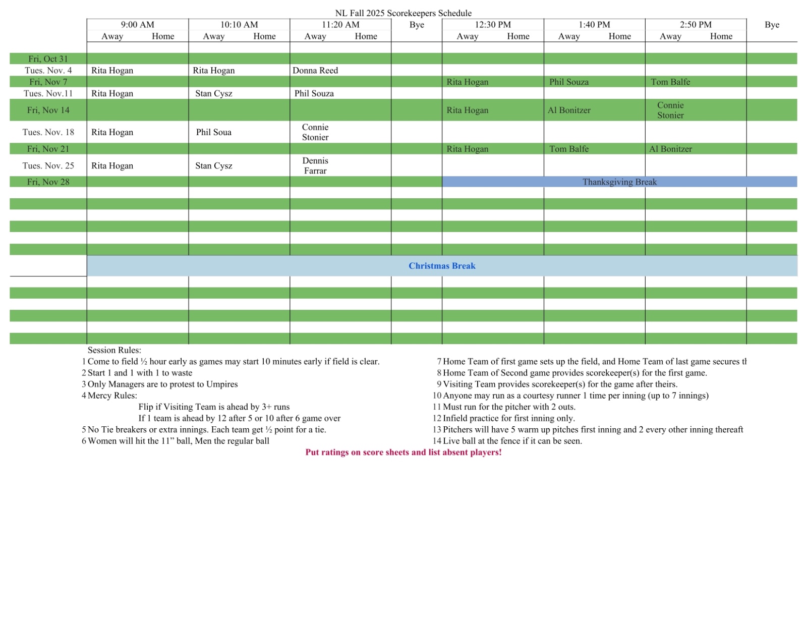 NL Scorekeepers Sched