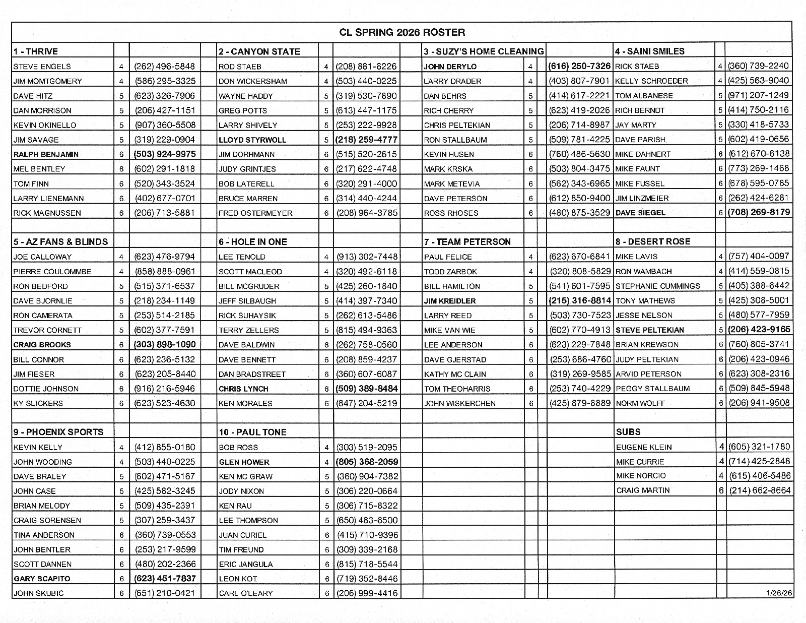CL Roster
