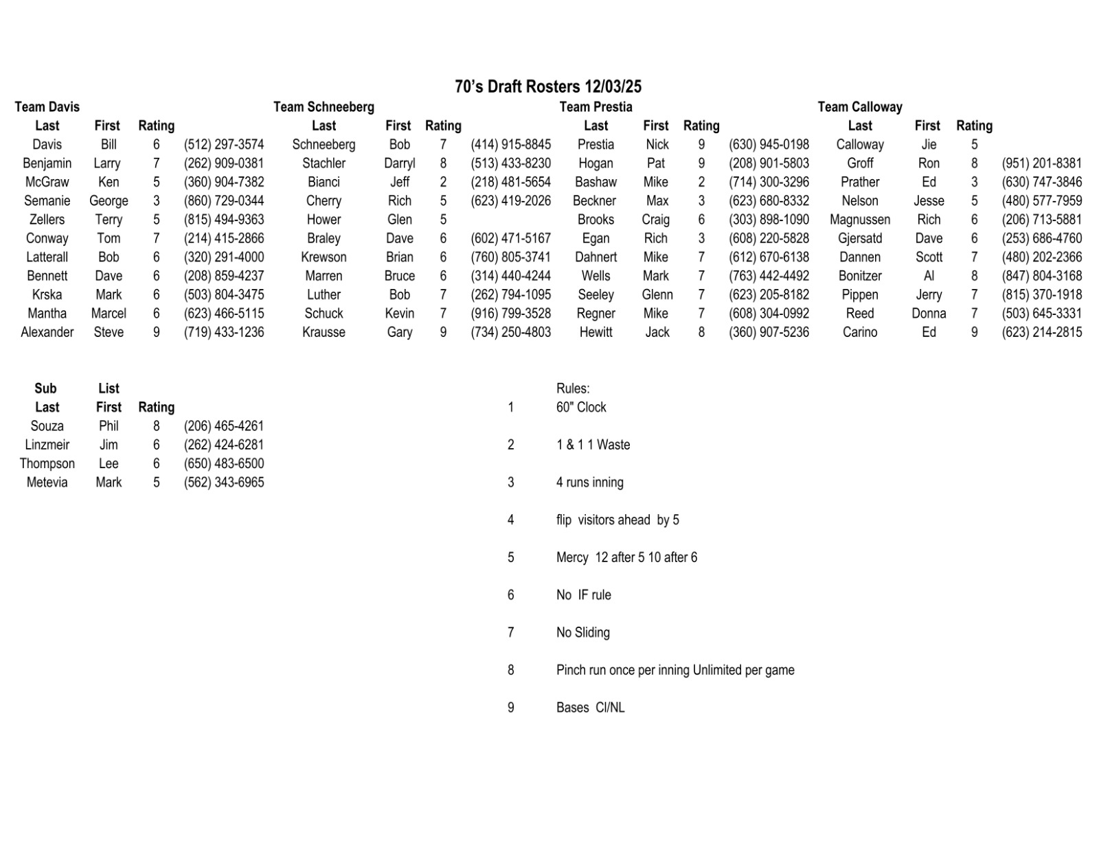 70s Rosters